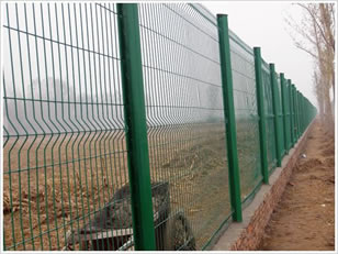 網片塑后5.0mm 網片采用兩道折彎 網孔采用8*20cm 網片與立柱采用墨綠色效果大方美觀, 防腐形式采用先熱鍍鋅+浸塑、