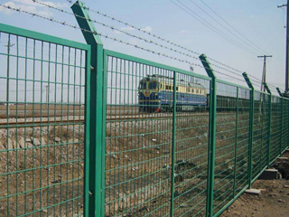 圍墻鐵護欄框架式:四周有邊框,結構堅固耐用,絲徑3.5-5.0mm,外形尺寸1.8*3m,立柱48預埋立柱與48管地盤立柱,長度1.9m/2.1m,頂端可以安裝刺鐵絲,加強防護,框架圍墻鐵護欄常用于鐵路兩側,廠區圍墻,河道兩側等等。