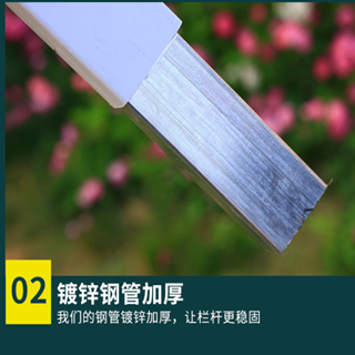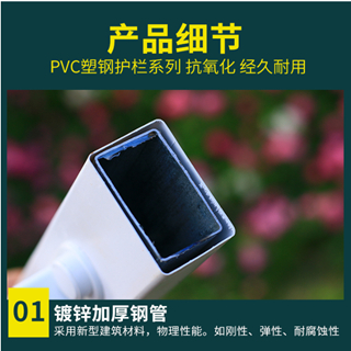 pvc塑鋼護(hù)欄花池草坪小柵欄結(jié)構(gòu)特點(diǎn);pvc塑鋼護(hù)欄由橫梁,豎桿,立柱等幾大部分組成,橫梁表面為pvc內(nèi)部有鋼管內(nèi)襯,豎桿為pvc材質(zhì),立柱內(nèi)部也有內(nèi)襯,這種護(hù)欄有塑料與鋼結(jié)構(gòu)組成,所以稱為塑鋼護(hù)欄,pvc塑鋼護(hù)欄,這種護(hù)欄兼顧鋼材的強(qiáng)度和pvc的美觀特性,表面光潔,耐腐蝕,不褪色,色彩亮麗,稱為最具裝飾效果的精品小柵欄,pvc塑鋼護(hù)欄高度30-180cm/橫桿尺寸一般為36*56cm/立桿20*46cm/立柱58*78cm/88*88cm/121*121cm;立桿間距16cm/長(zhǎng)度一般3.08m/套。