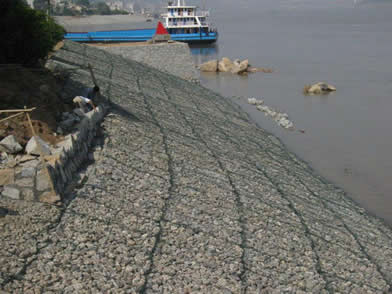 (2)鍍鋅絲包塑護坡網是在鍍鋅鐵絲的表面包一層PVC保護層,再編織成各種規格的六角網。這層PVC保護層將會大大增加網的使用壽命,并且通過不同顏色的選擇,使其能和周圍的自然環境相融合。