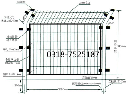 1.工廠圍欄、廠區(qū)圍欄、圍墻為浸塑鐵絲網(wǎng)圍墻,高度為1800mm.