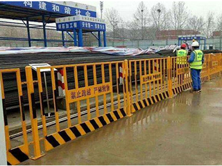 基坑防護欄基坑臨邊防護欄規(guī)格尺寸1.適用于地面施工區(qū)域分隔,基坑周邊防護,首層(或者上部樓層)結構臨邊防護。2.基坑防護欄立柱采用40*40mm方鋼,在上下兩端250mm處焊接連接板50*50*4mm鋼板,兩道連接板采用10mm螺栓固定連接。3.防護欄外框采用30*30方鋼。每片高度為1200mm,寬度為1900mm底部200mm處加設鋼板作為踢腳板,鐵絲直徑不小于3.0mm,網孔30mm。4.踢腳板表面刷紅白間隔漆為警示條,網面為黃色油漆,并張掛“當心墜落”或其它安全警示標語。